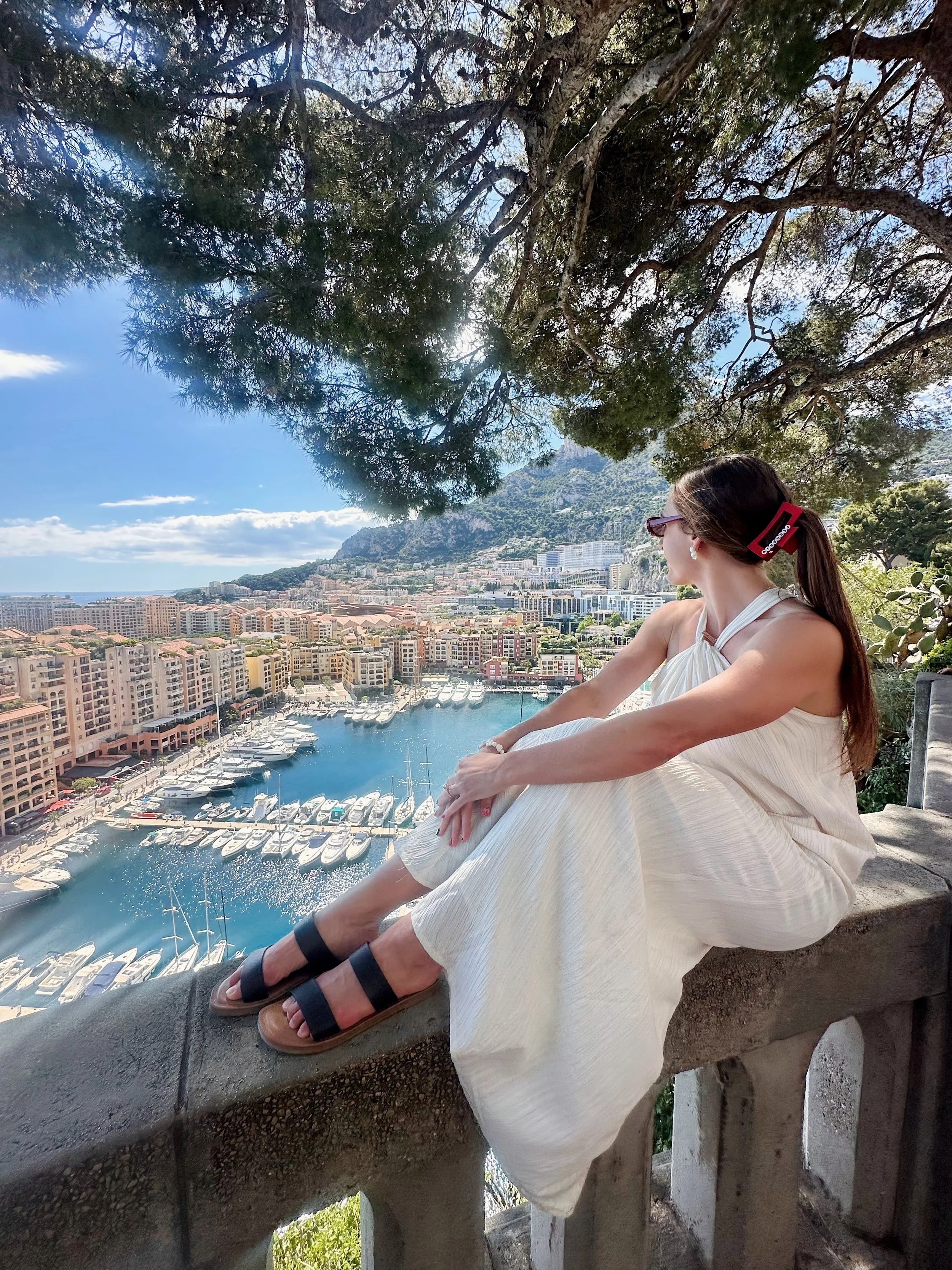 Vue Panoramique sur Fontvieille - the best view spot to get a photo with the Monaco buildings and yachts.Walking here you will also pass by the Prince’s Palace, Old Town, and Cathedral de Monaco. Peep my Ferrari hair clip!
